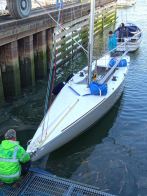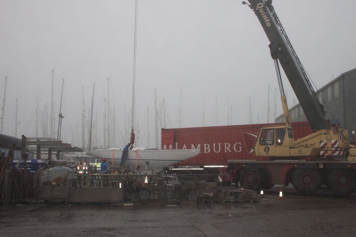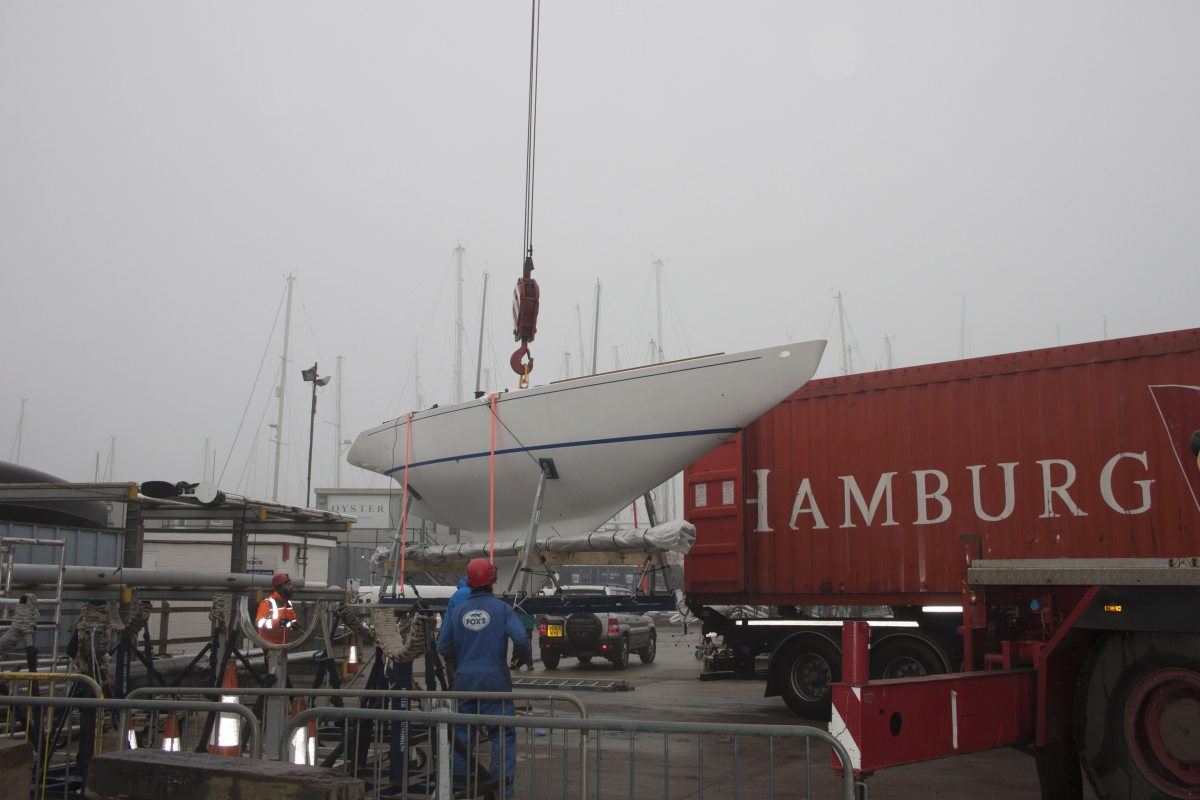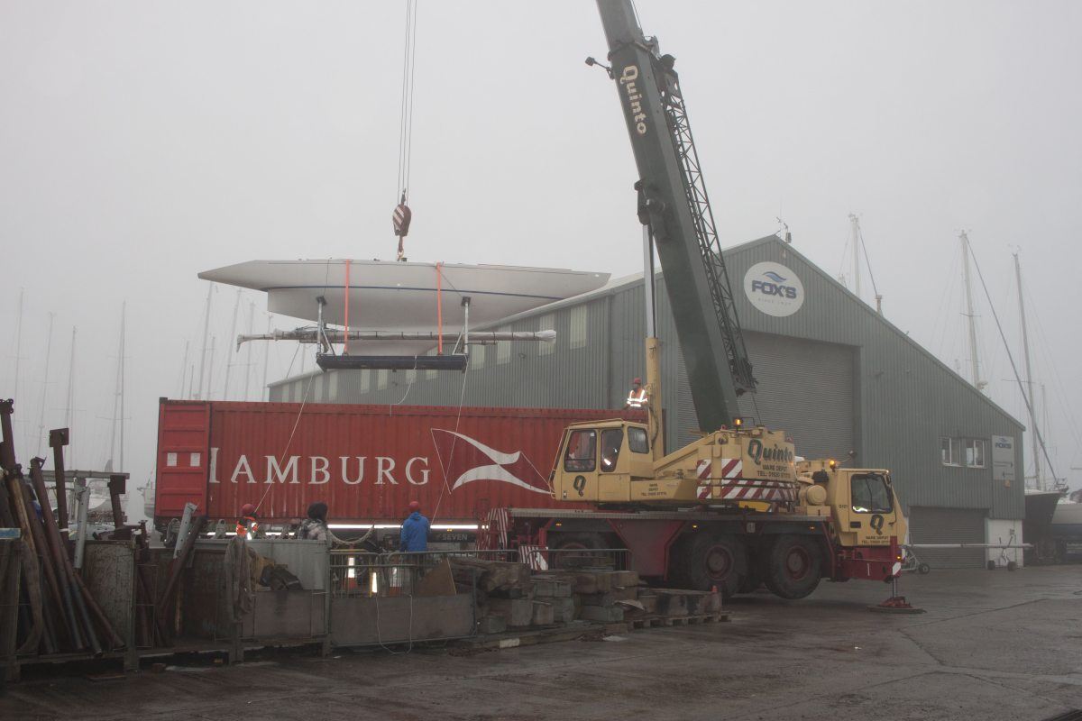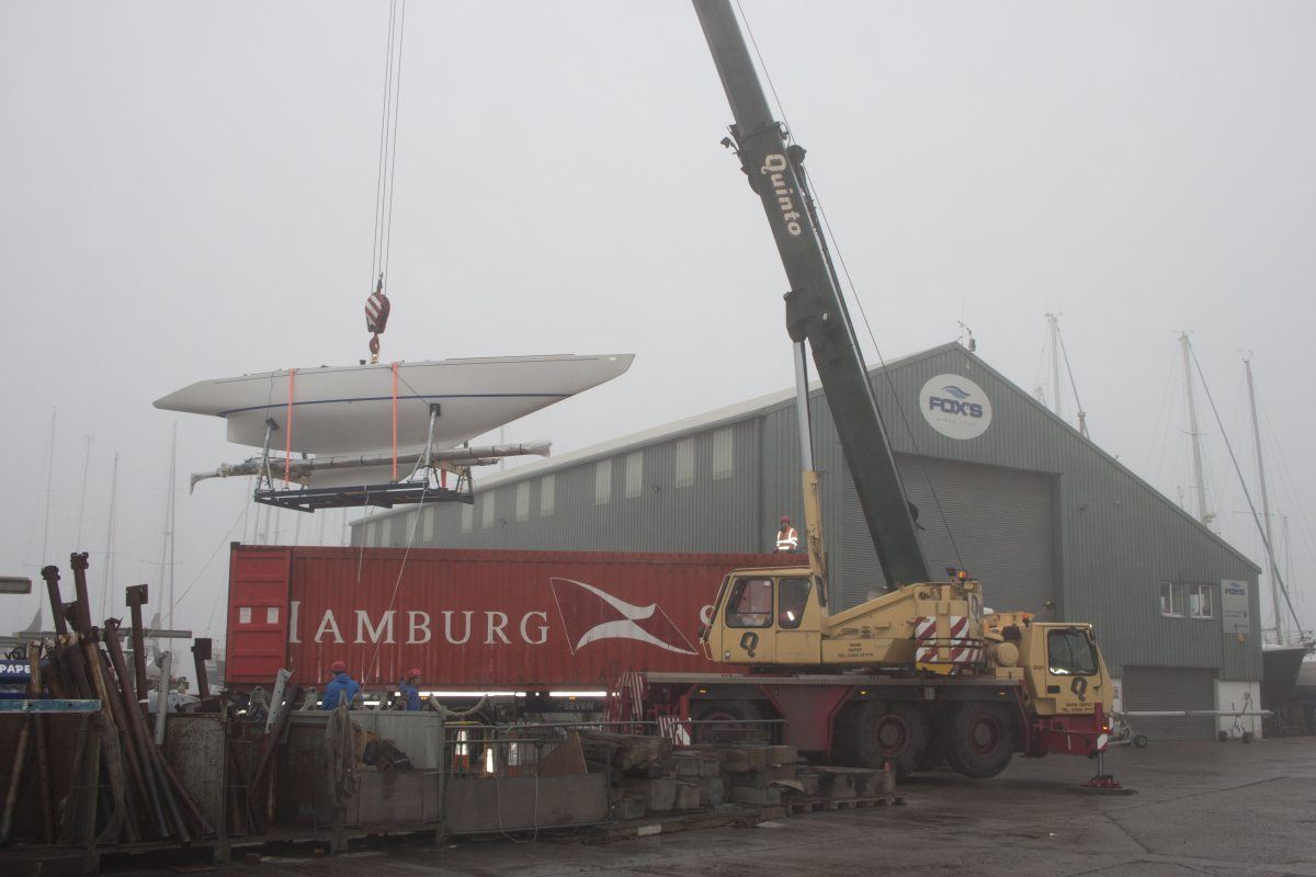 With support from Fox’s Rigging and our Marina team, weighing, launching, commissioning and initial sailing trials were completed during a chilly January, before she was carefully loaded into her custom transport container and shipped to San Francisco where she will join the San Francisco 6-Metre fleet for the 2017 season.