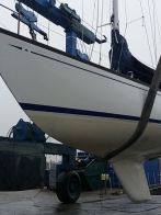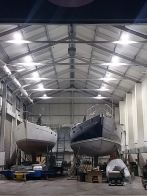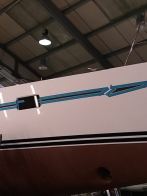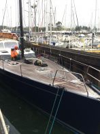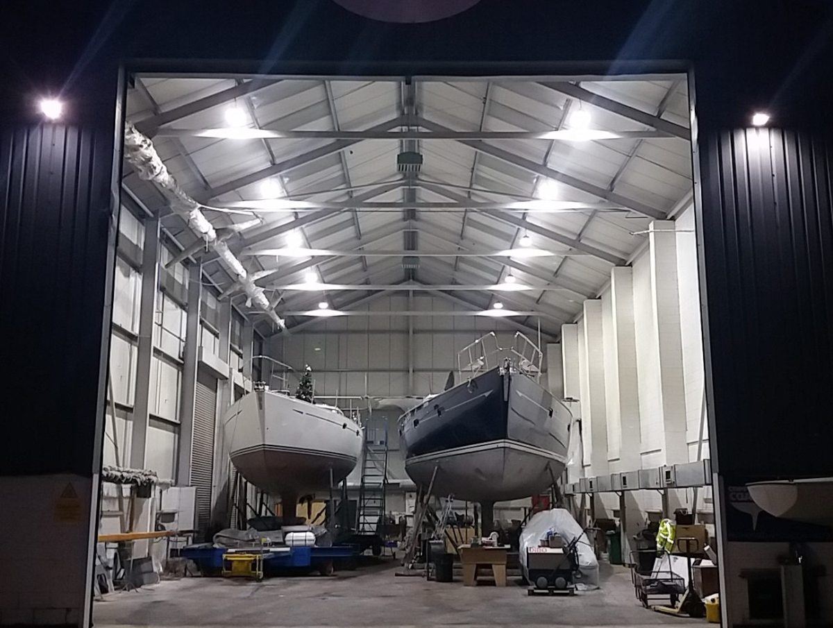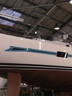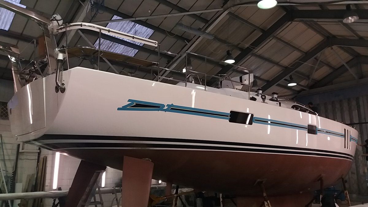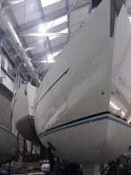 Oyster 575/43 arrived during the night and immediately went into the sprayshop for boot top paint work – with this work due to be turned around by the end of the year, prior to the yacht being rigged and commissioned at Fox’s. The Fox’s sprayshop is on a tight schedule and is now fully committed for the next four months.