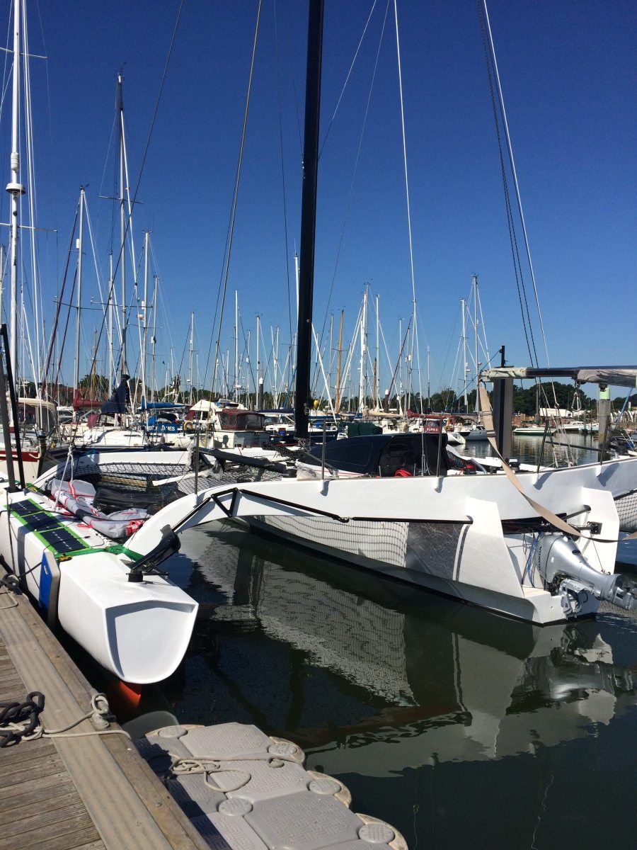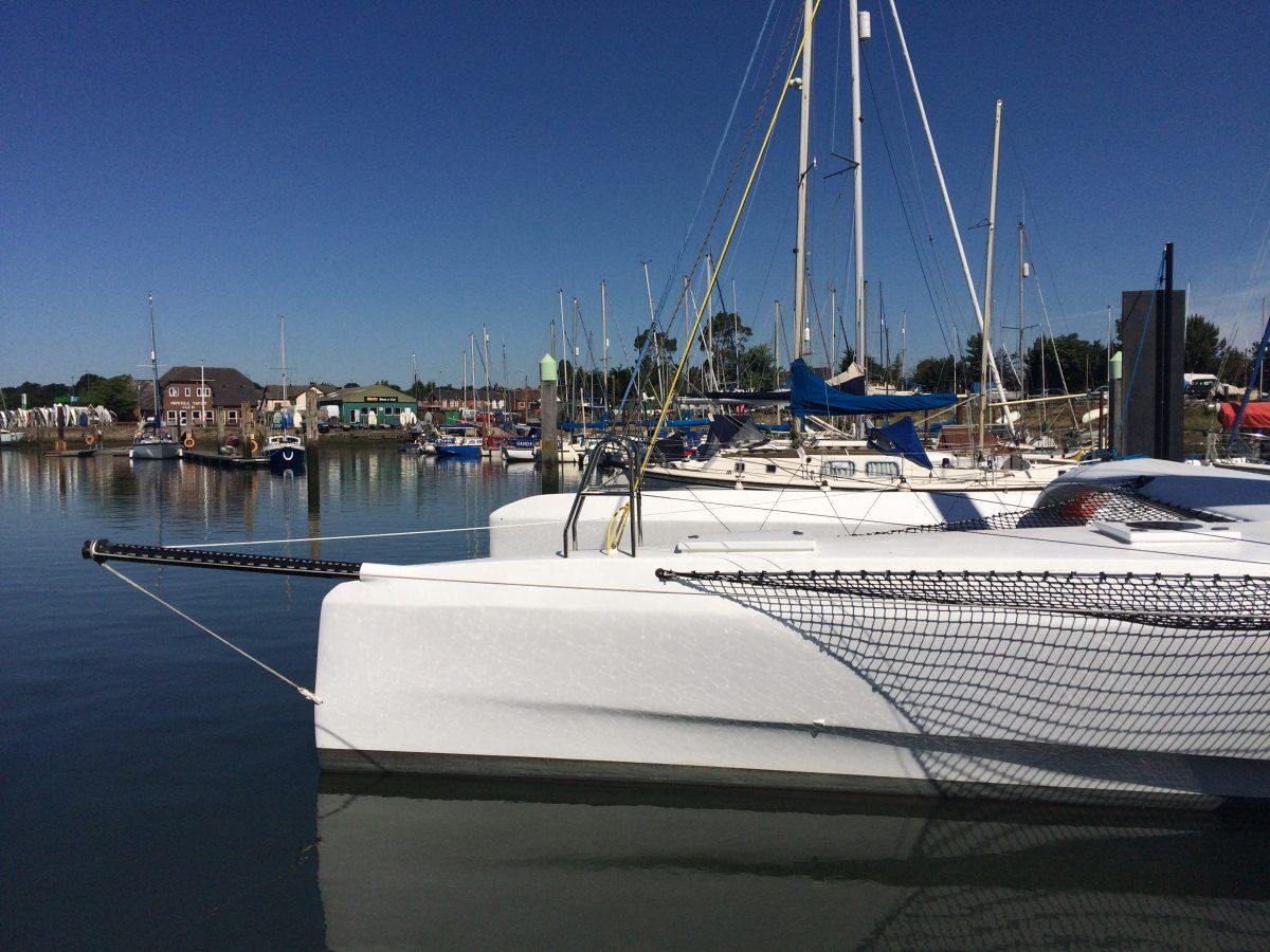Morpheus is a Shuttle 39 high performance, carbon fibre trimaran, designed by Isle of Wight based Shuttleworth Design, for offshore sailing and fast cruising. Launched in June 2018 by owner Andrew Fennell, this exciting, new yacht has just arrived at Fox’s Marina & Boatyard and will be undergoing sea trials this summer. Fox’s Senior Rigger, Simon Whitehouse, has been involved with her build from the early stages and a number of departments at Fox’s, including Fox’s Rigging and Fox’s Electronics, are now preparing her for launch day.
