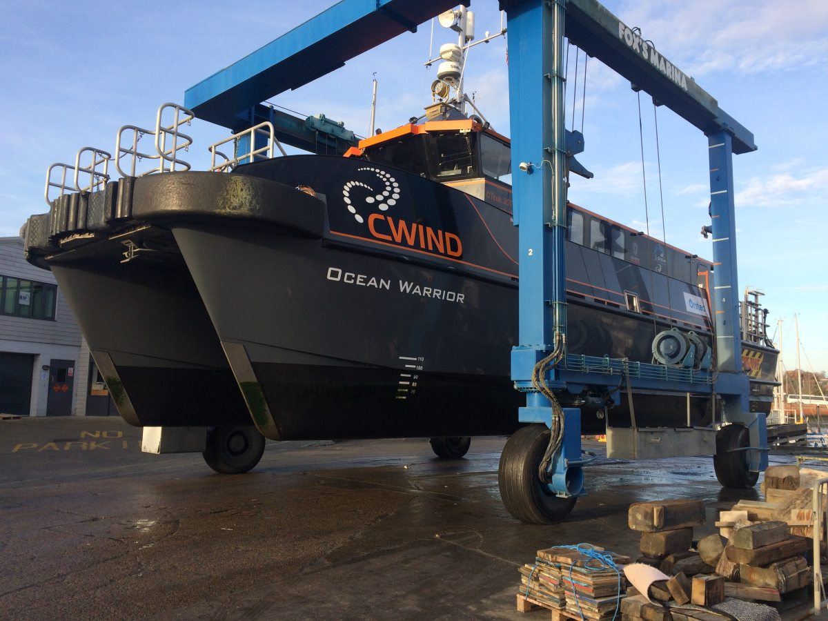 Ocean Warrior is operated by Ocean Transit Ltd and is a fast, offshore wind farm support vessel operating in UK waters, mainly the North Sea. She was built by Colchester based CTruk, launched in 2014 and is 18.5m LOA and 6m beam.