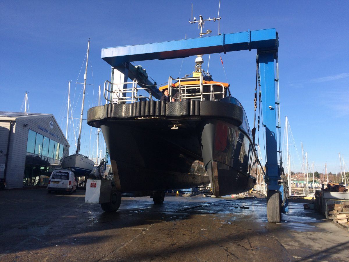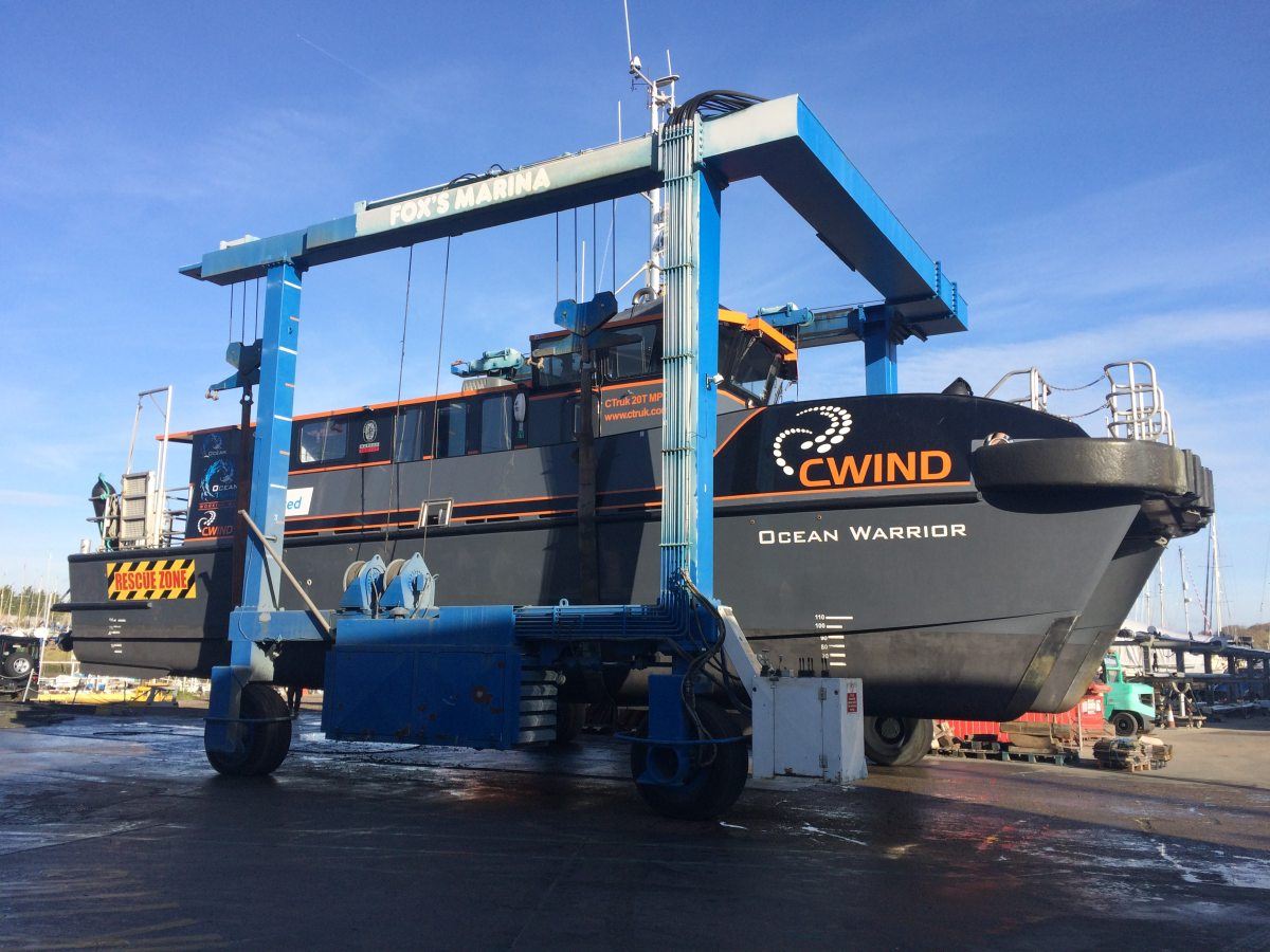 Ocean Warrior arrived at Fox’s for emergency repairs to her transducer and was hauled and relaunched on the same day ready to go back into service with the minimum loss of working time. The Fox’s marina team has plenty of experience in lifting and moving this type of large, commercial vessel and can react quickly to urgent requests where getting a vessel back into commission quickly is the absolute priority for her owner.