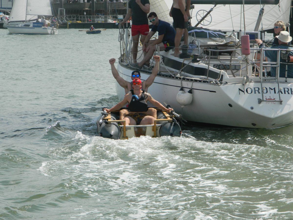 Easily winning first place and finishing a long way ahead of the next boat was Fox’s Workshop Manager, Ollie Patten and Fox’s workshop technician, Hobie Wright, in their recently restored SJ30, displaying brilliant sailing and boat handling skills by dropping and collecting their runners under spinnaker!