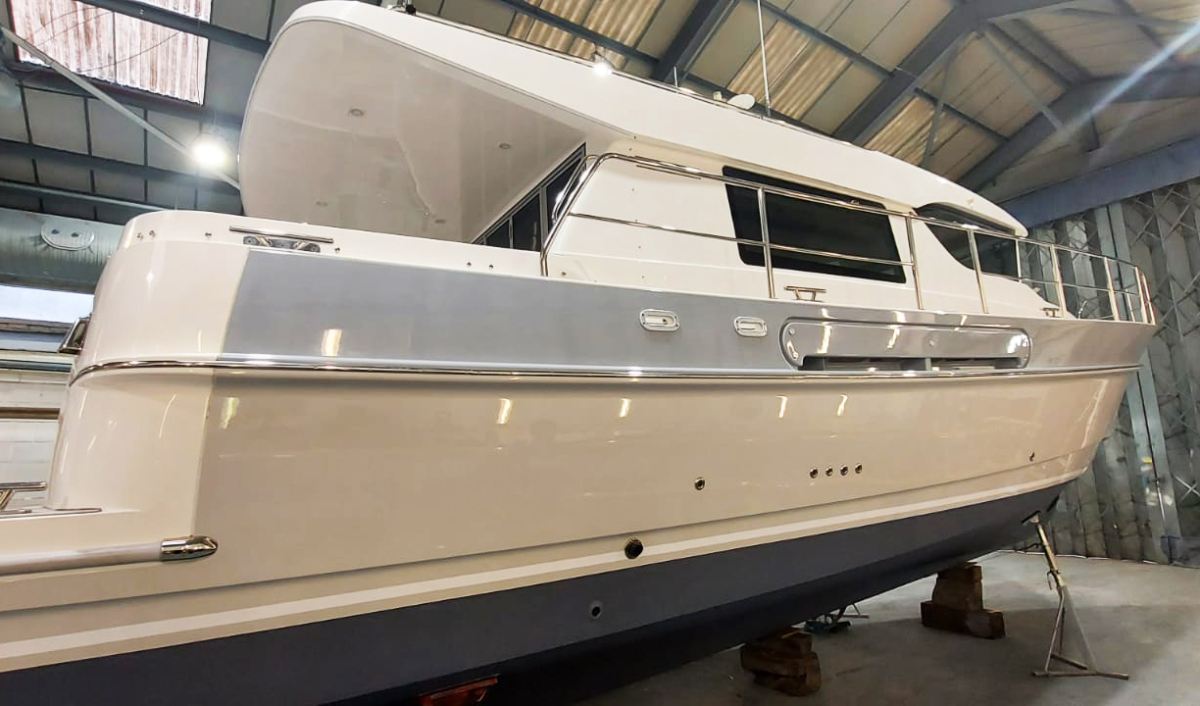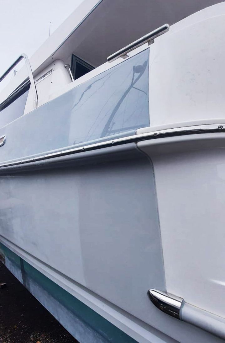 Pictured above and below is the Hardy 40DS that we recently polished and treated with Ceramic Pro Care+, which is a lighter version than the Ceramic Pro Marine and non permanent. The in-progress shot shows how effective the product is for creating a smooth shine instantly.