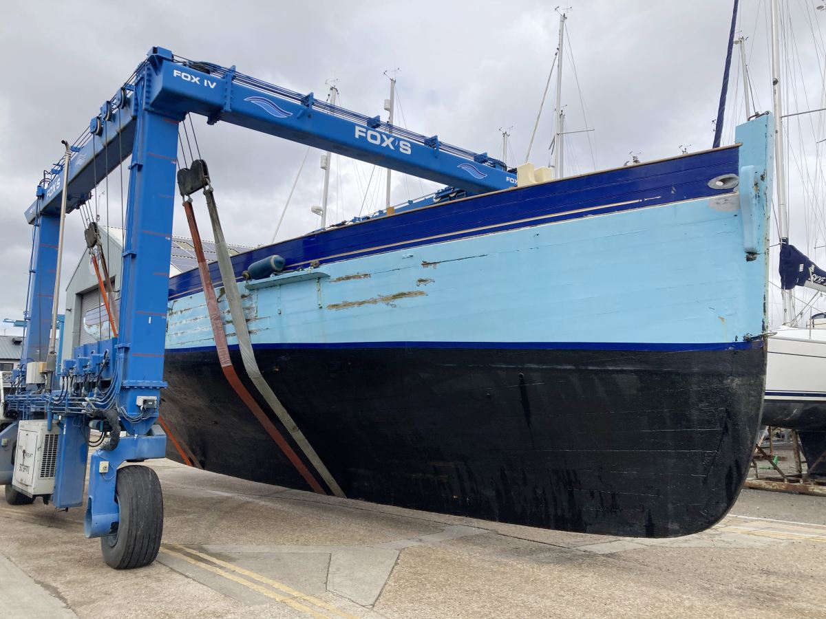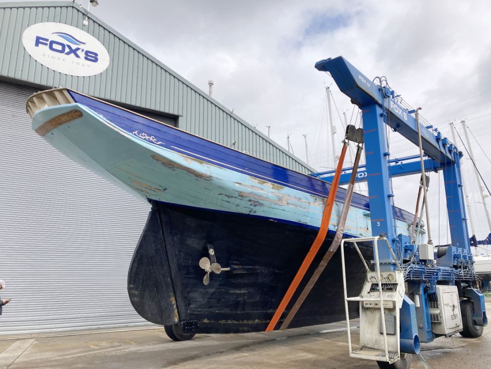 Built in 1882, Comus of Wivenhoe has been in the same ownership for 50 years. Recently sold by David Morris Yacht Brokerage, we were asked to assist with hauling Comus and preparing the boat for road transport and shipping to her new home in South Africa. We wish her well on her travels.