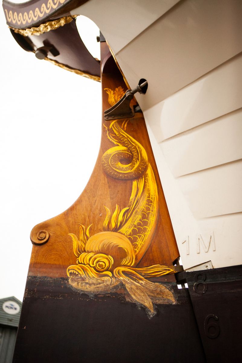 Built in 2012 to celebrate The Queen's Diamond Jubilee, the 18-oared row barge has an all wood structure including fully gilded ornate carvings and bright work. Gloriana is the first Royal barge built for over 250 years. However, her design and build replicate structures and techniques that have changed little since the clinker built long-boats of the Viking age.