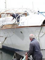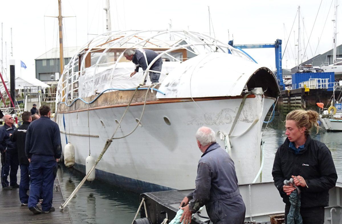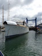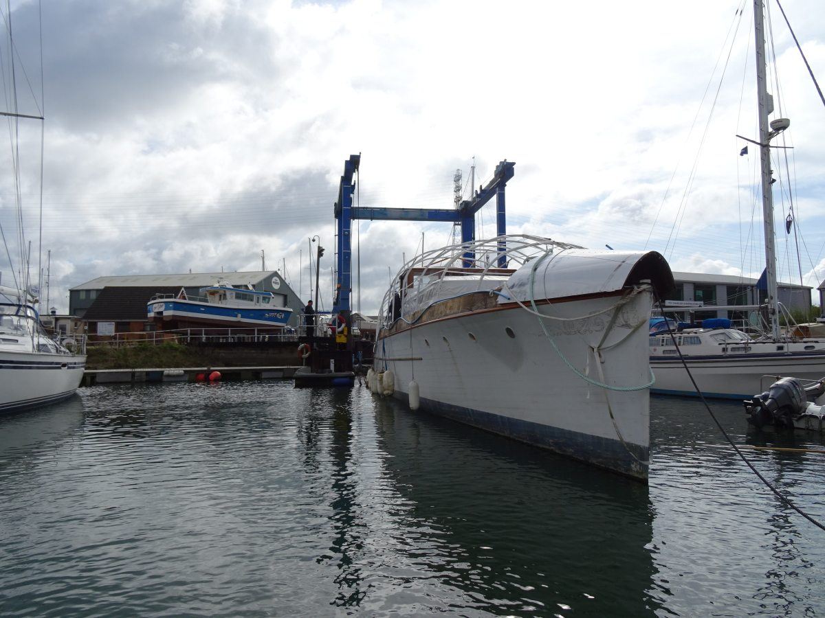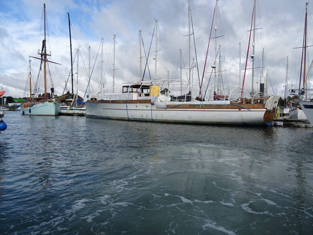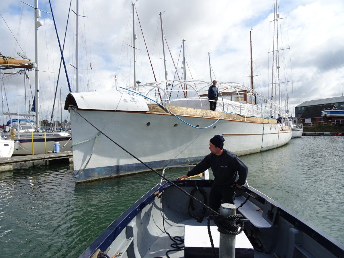 The magnificent and historic 87′ LOA motor yacht, Ginger-Dot, originally built and launched in 1922 by the Luders shipyard in Stamford Connecticut, USA, arrived safely at Fox’s Marina & Boatyard this week having been expertly towed by Tam and Ben Grundy from her mud berth in the River Deben at Melton, near Woodbridge.