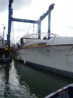 Fox’s is one of only a handful of UK boatyards with the on site capability and expertise to lift and move such a large vessel and provide such complete refit solutions.