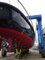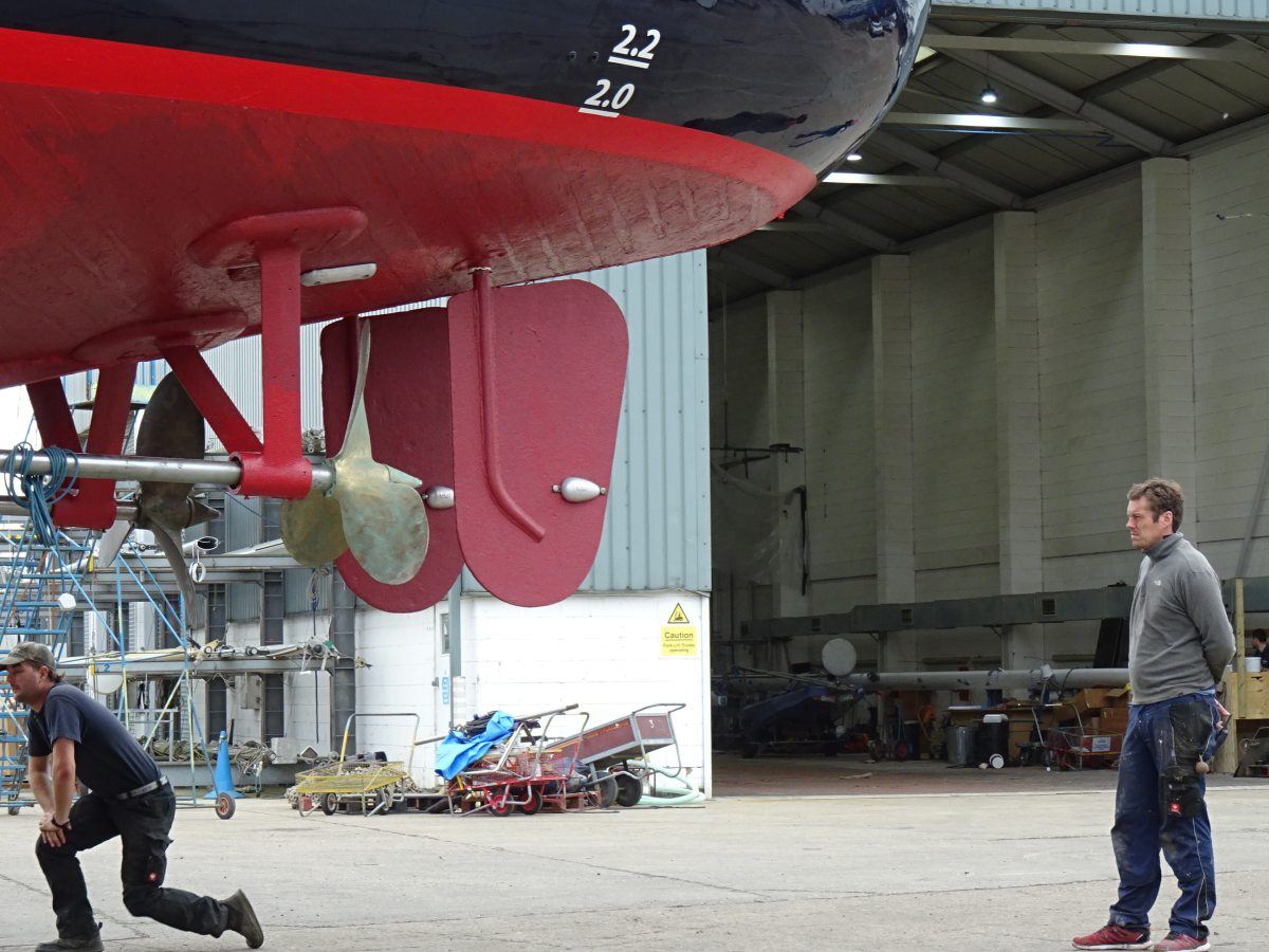 Ollie Patten, Fox’s Workshops Supervisor, and his team have again pulled out all the stops to deliver this magnificent project on time and will be on board, monitoring her very closely over the next 24 hours, while her teak hull takes up and adjusts to being back afloat.