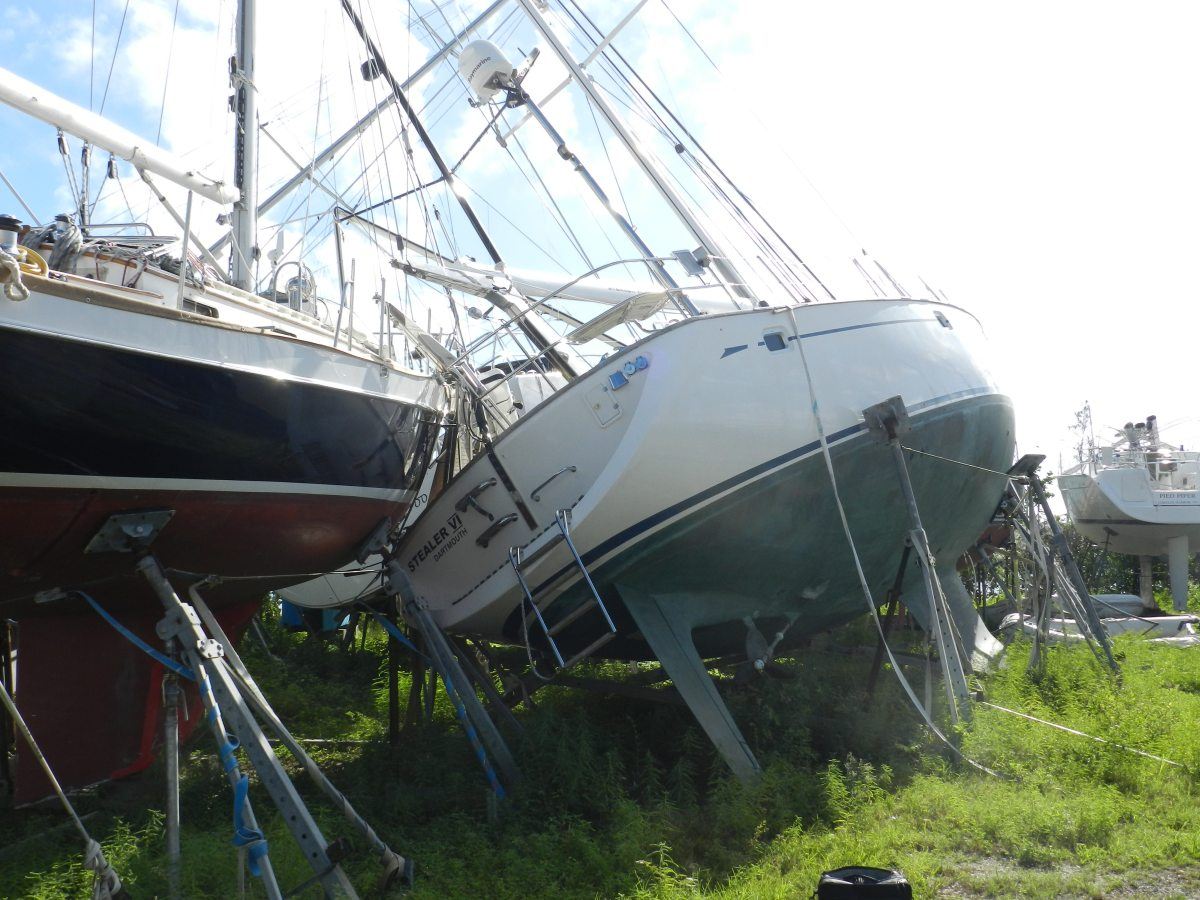 Stealer VI was originally launched and commissioned at Fox’s Marina & Boatyard in 2001 and has remained under the same ownership since then. Unfortunately, whilst laid up ashore in the British Virgin Islands, this fine yacht suffered significant damage during the 2017 hurricane that left a trail of destruction and devastation across the Caribbean. She has now been shipped back to the UK and delivered to Fox’s Marina & Boatyard for repair.