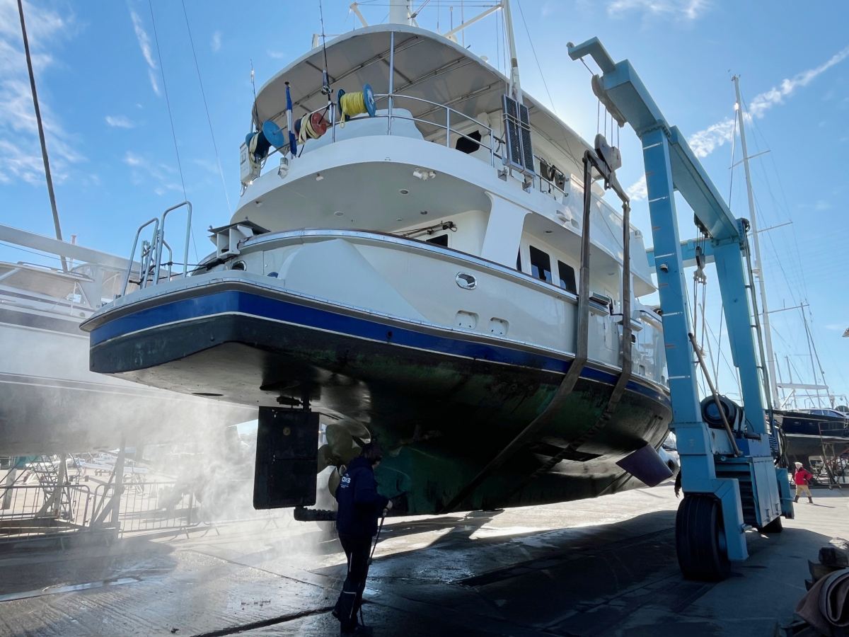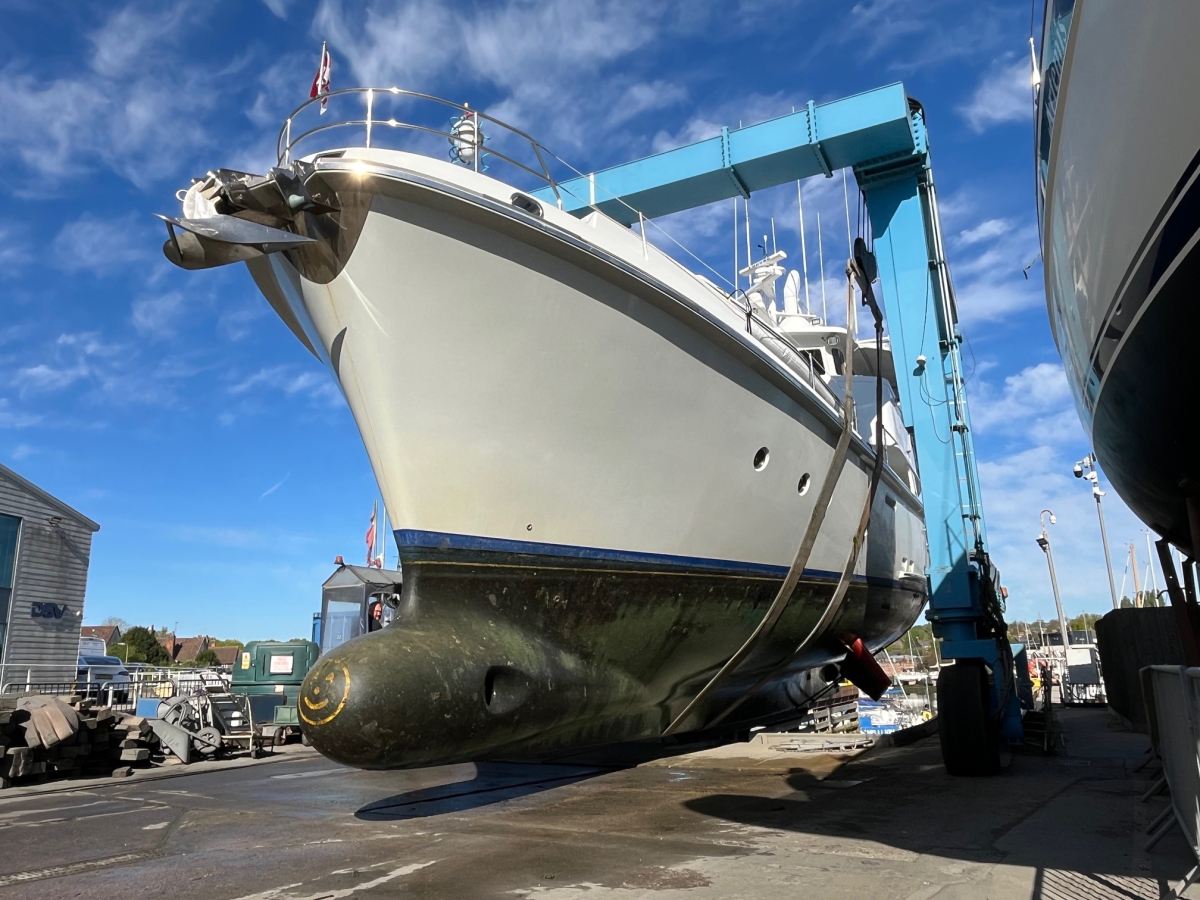 We are ending another busy week at Fox’s with an interesting visitor - a Nordhavn 62, in from St Katharine Docks for works prior to her return journey to Canada. Great to see such a handsome and capable passagemaker in the yard.