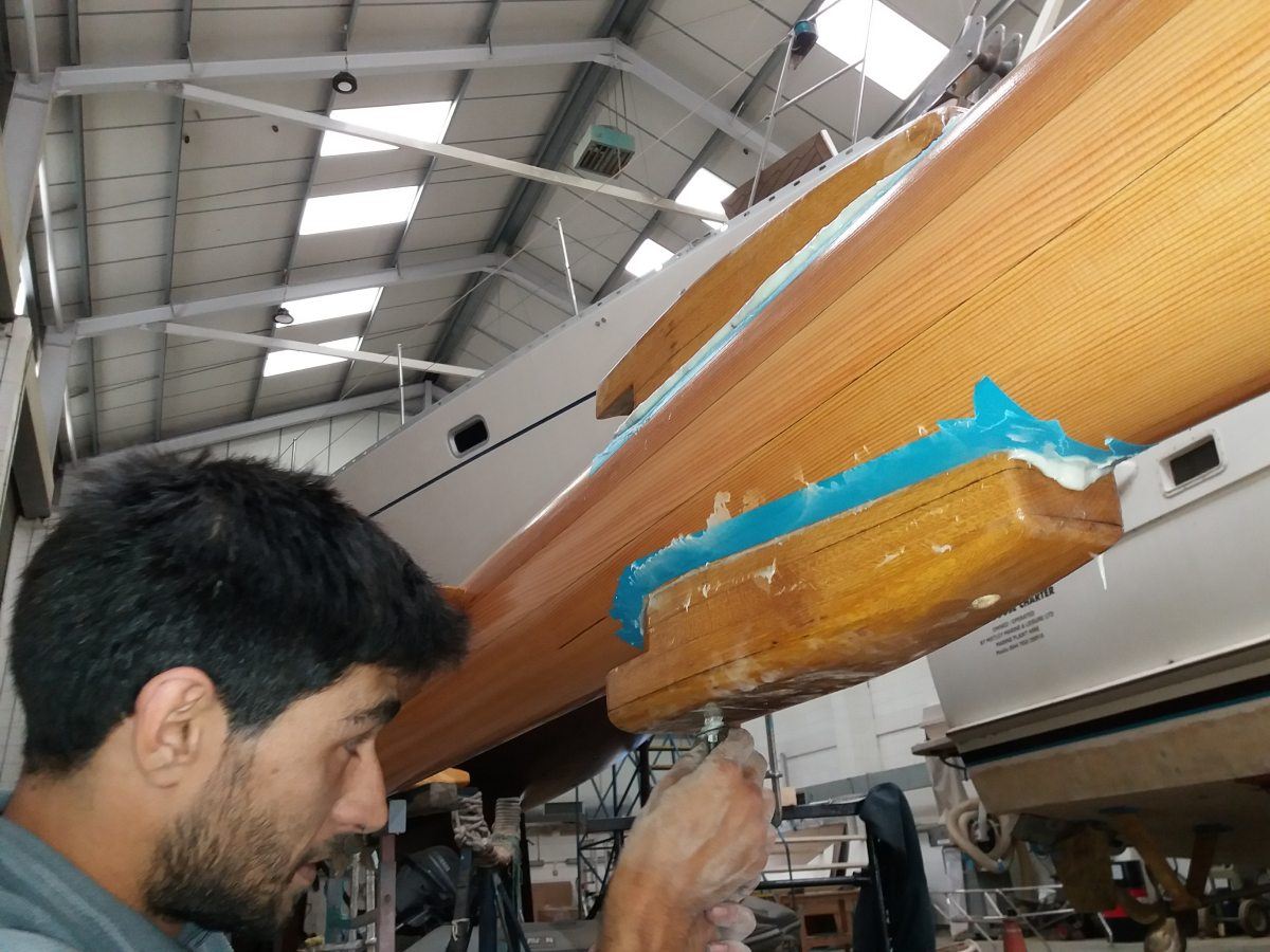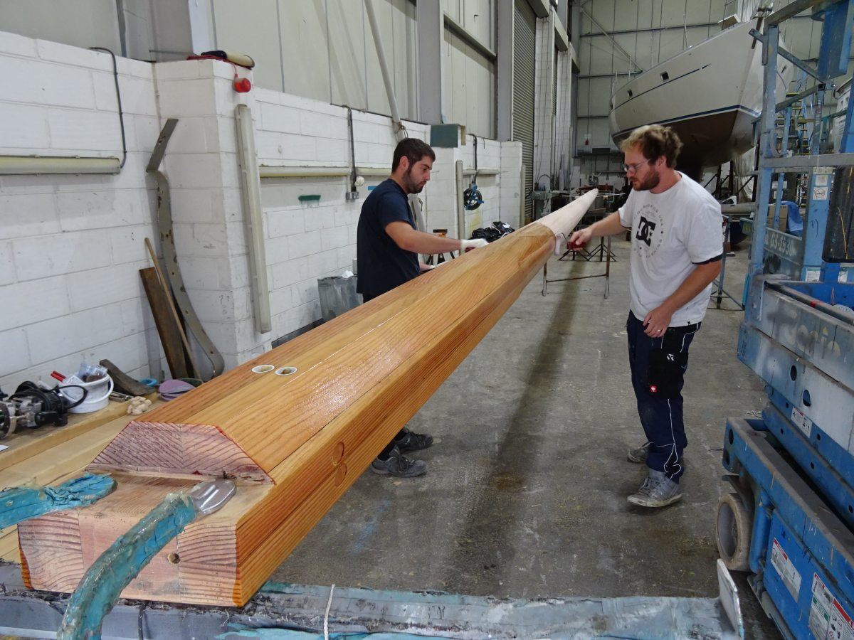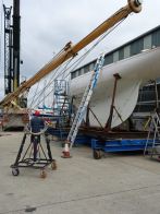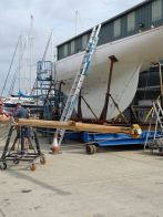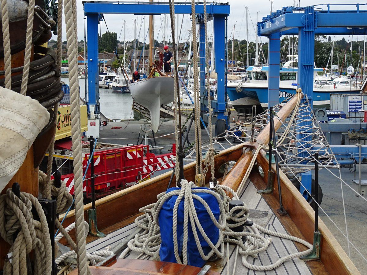 The team of Fox’s skilled shipwrights have been enjoying working on the refit of the beautiful, classic, wooden Fife, Kismet, this year, which has included the refurbishment of her wooden main mast, re-varnishing, replacing copper rivets and custom leatherwork, all carried out inhouse by the Fox’s team.