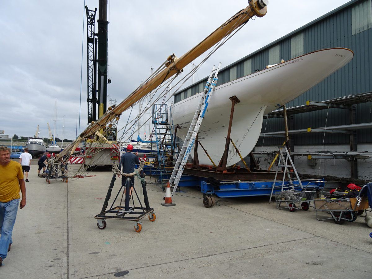 Built by the Fairlie yard in Scotland in 1898, Kismet was carefully prepared and loaded to transport by the Fox’s team ready for her journey by road to the South of France to take part in the Cannes, Régates Royales, which starts on 22 September, followed by the Voiles de Saint-Tropez later the same month.