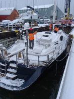 With a cruising itinerary that will see her heading to the Mediterranean before she crosses the Atlantic to the Caribbean and then makes her way through the Panama Canal to the Pacific Ocean, it will probably be the last time this lovely, bluewater cruising yacht will see snow on her decks like this for a while!