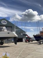 Check out the after and before photos below of this handsome Najad 50. Fresh out of our spray shop, she looks stunning after topside re-fairing followed by a complete repaint achieved using Alexseal Yacht Coatings.