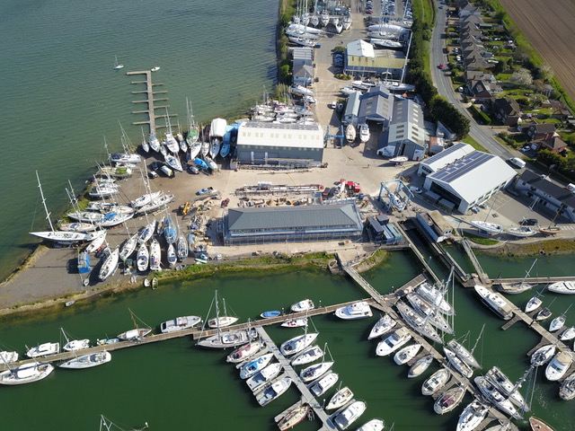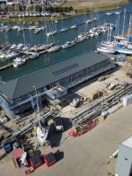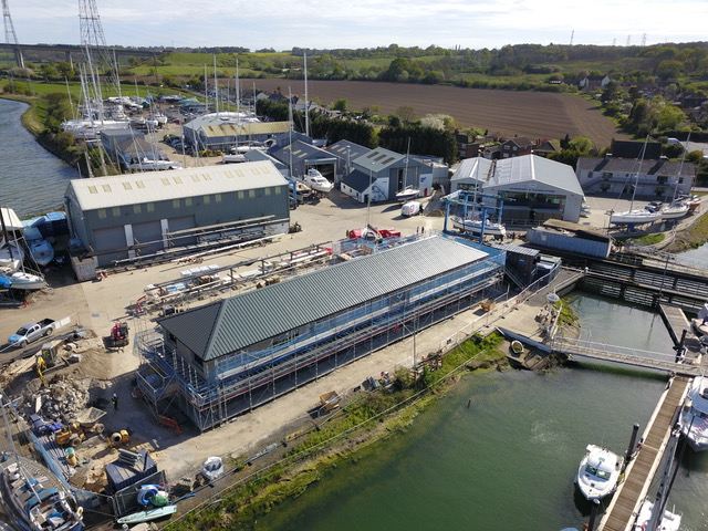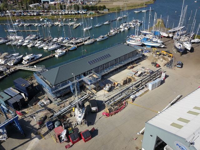 An aerial view of the fantastic, new ‘Outlook’ building taking shape alongside the marina at Fox’s Marina & Boatyard, which will provide new office space and facilities for Fox’s berth holders and visitors.