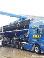 This lovely, new Oyster 625 – hull Nº 20 – arrived safely at Fox’s Marina & Boatyard in the middle of January’s blizzards, having been carefully transported from Oyster’s build yard in Wroxham by specialist yacht transporter, Abbey Transport, along with a police escort. She’ll be heading for some much warmer climes once she has been rigged by Fox’s Rigging, launched and commissioned here at Fox’s and handed over to her new owners.