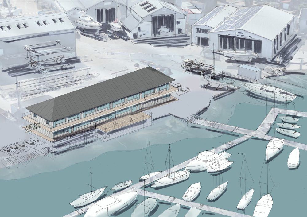 Significant investment in the Fox’s Marina & Boatyard site and facilities is taking place in 2019 with the redevelopment of the waterfront alongside the marina. The all new, two-storey, pavilion style building will provide exceptional office accommodation on the first floor with views overlooking Fox’s Marina, whilst the ground floor will provide new marina facilities for berth holders and visitors, which will include the yacht club, new showers and toilets, a harbour master’s office and a staff room for Fox’s employees.