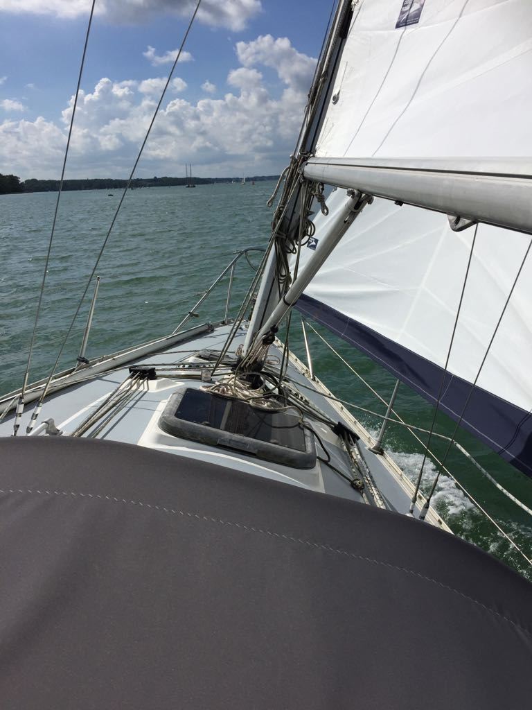 “Thank you so much for coming with us this afternoon and helping us set up Honeyseal’s new sails. It was a fantastic trip and we really felt the boat was sailing so much better than previously. The helm was really light, and pointing accurately was made easy with navigation equipment that actually works! We are also really pleased with the new spray hood and sail cover from Dolphin Sails & Covers. Fox’s has done a great job on our old boat and I hope that we can come back to Fox’s for more work. It’s good to know that you don’t have to own an Oyster or be a champion racer to be so well looked after at Fox’s!” Honeyseal owner, Helena Scott