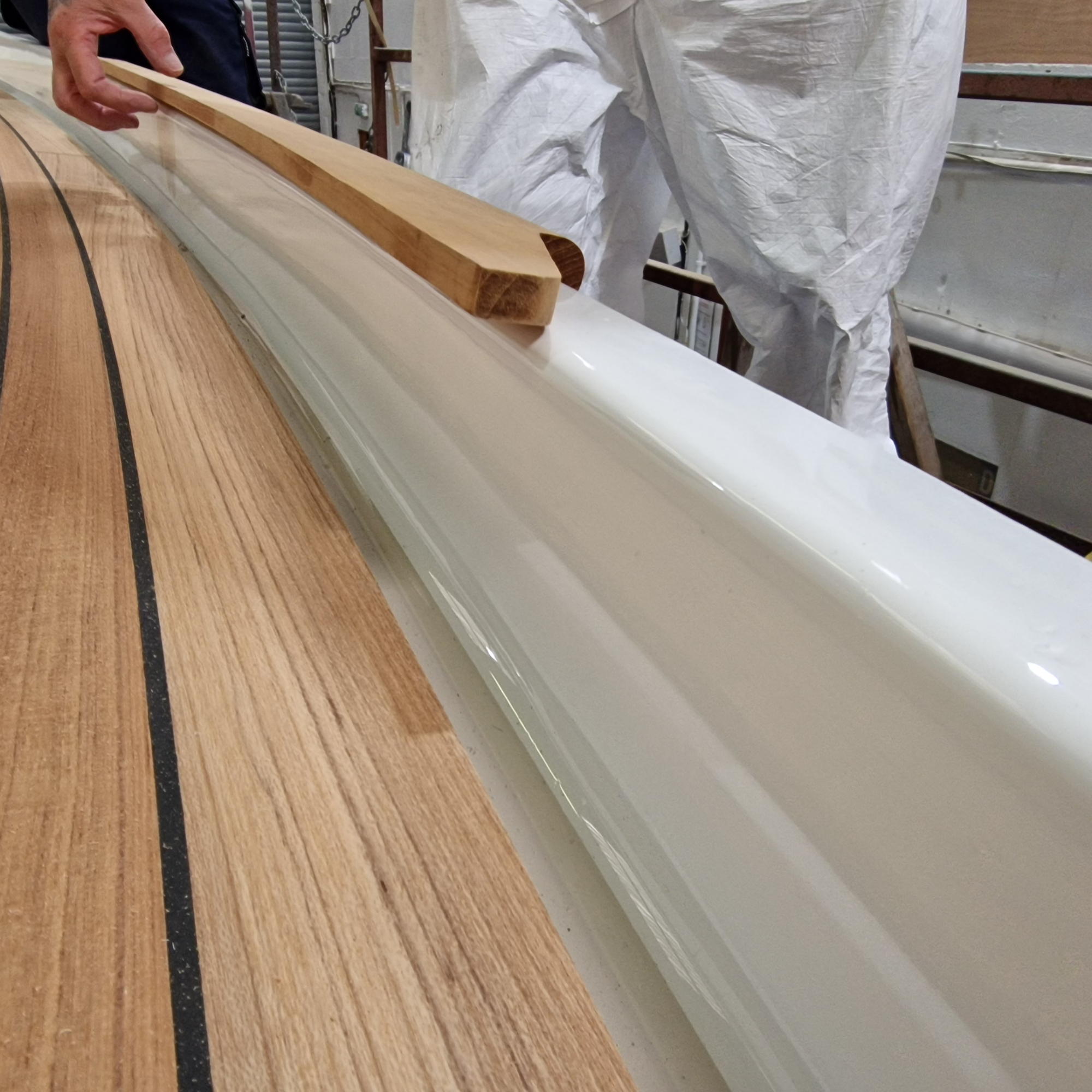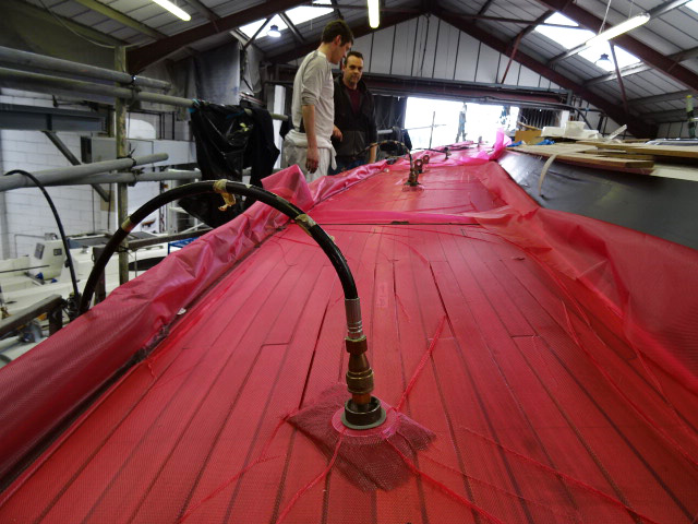 To bond the new decking in place, we use a vacuum bagging technique. This ensures a consistent clamping pressure and secure adhesion, while eliminating voids and the need for fastenings. This professional approach not only extends the life of your new deck but also enhances performance and appearance.