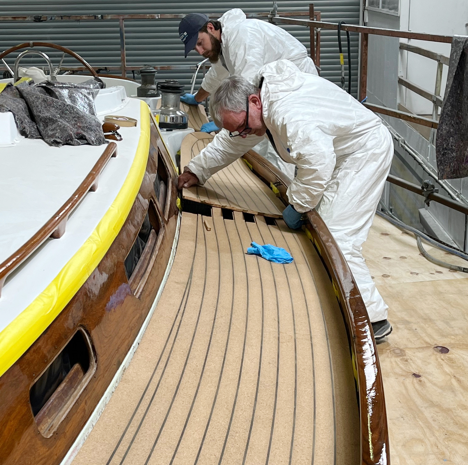At Fox's, we have developed efficient and proven methods for both full deck re-caulking and/or complete replacement. Replacement begins with the careful removal of deck gear, followed by the original teak planking and inspection of the substrate beneath. Any necessary repairs are carried out to ensure a sound base is established before the new decking is installed.