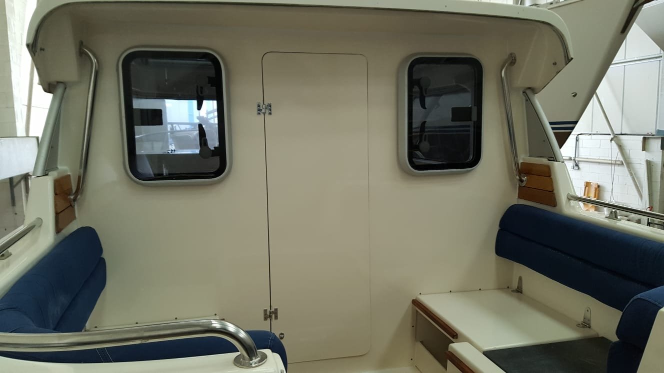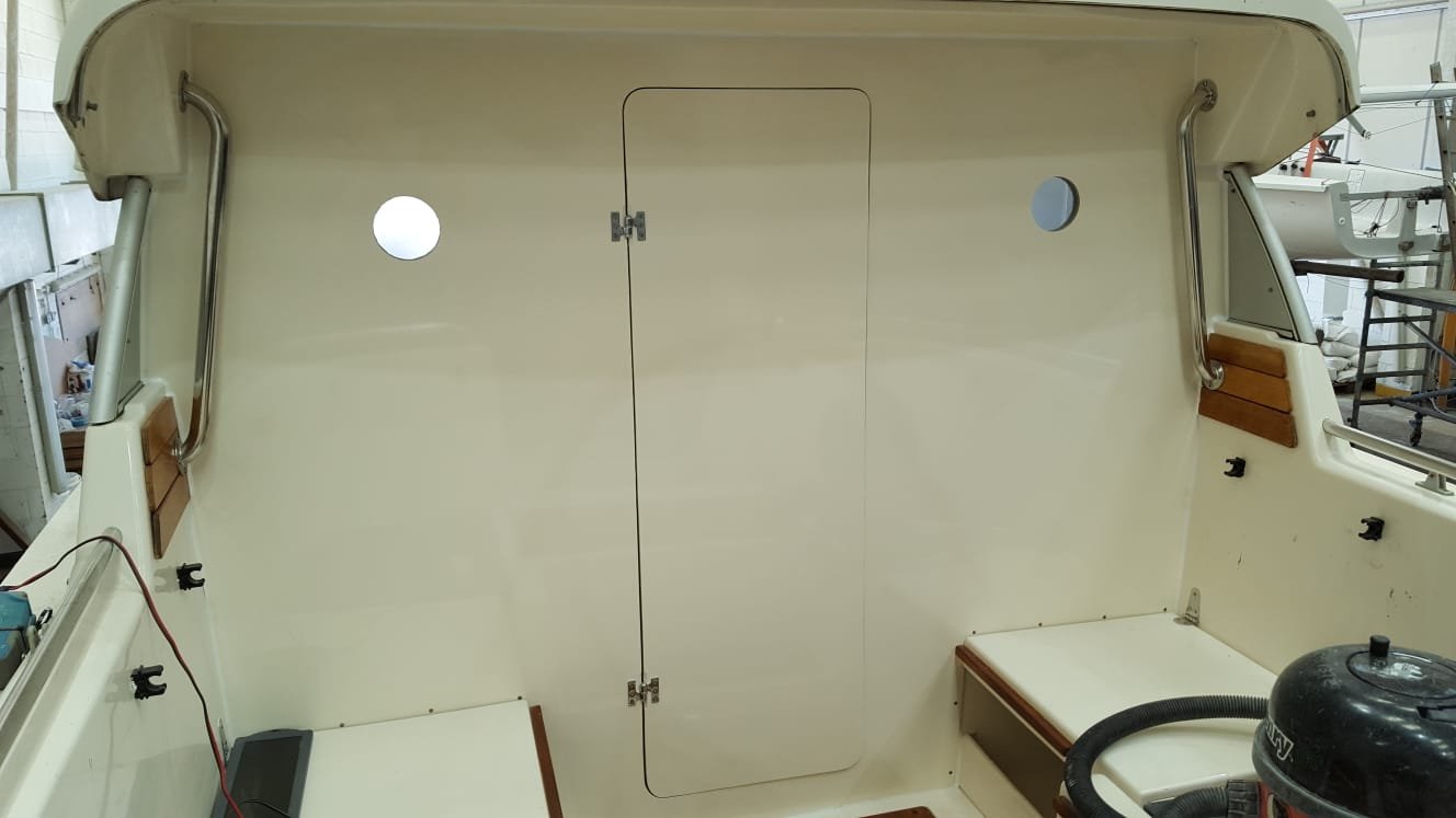 Following detailed discussions, Fox’s designed and installed an all new foam cored structural GRP bulkhead complete with lift off, locking door and additional window hatches. Positioned at the aft end of the wheelhouse, separating the aft cockpit from forward accommodation, the result is both practical and aesthetically pleasing whilst achieving the owner’s requirements.