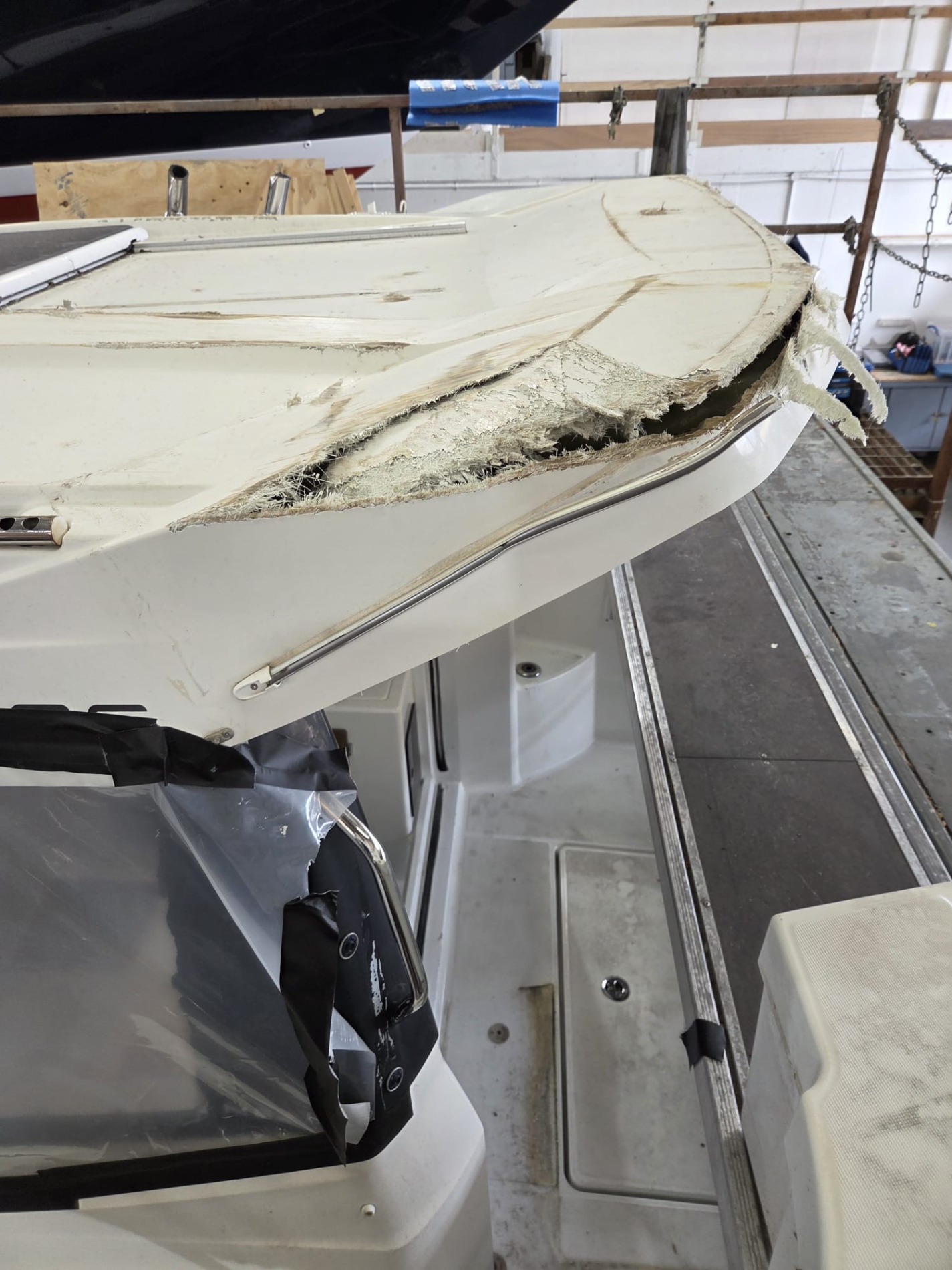 The force of the impact had also shattered the side windows and patio, while the deck and inner GRP moulding had split under the strain. What should have been a capable, family-friendly cruiser was, quite understandably, a heartbreaking sight for her owner.