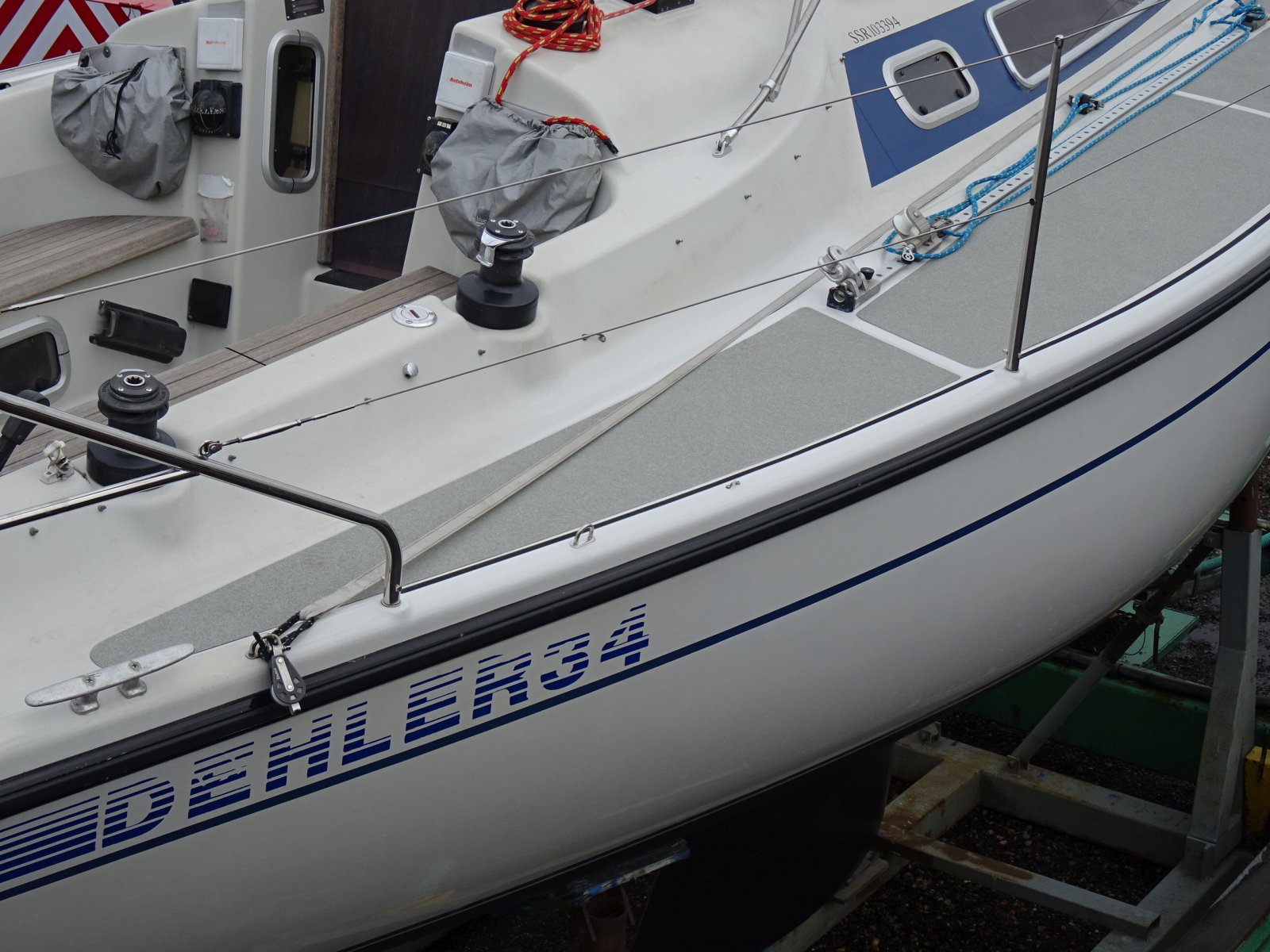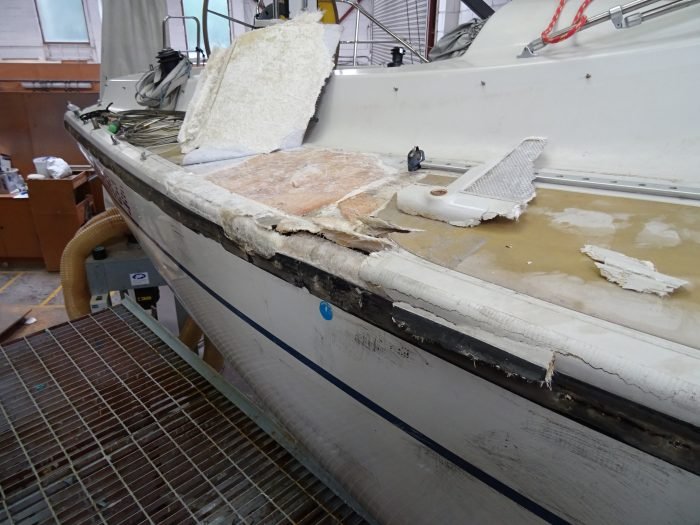 Following an unfortunate collision whilst racing, this modern, classic Dehler 34 cruiser/racer required extensive GRP repairs to her starboard side, which involved the topside, deck, alloy toe-rail and interior heads mouldings being completely rebuilt and finished in matching gelcoat, along with replacement pulpit, stanchions and lifelines manufactured and fitted by Fox’s stainless department.