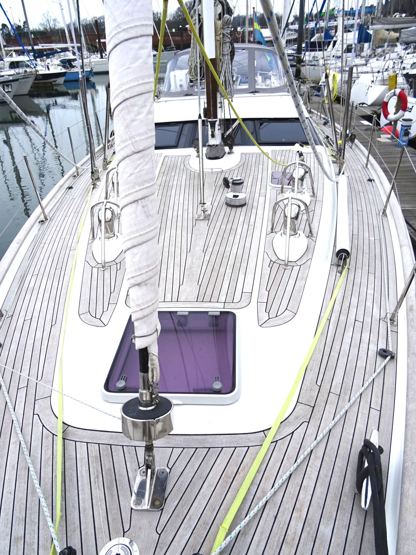 The mast was stripped and in-mast furling serviced, spars repainted, all standing rigging replaced and new up-lighters fitted to the spreaders along with various electronics and navigation equipment and new domestic, maintenance-free, gel batteries installed.