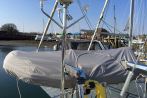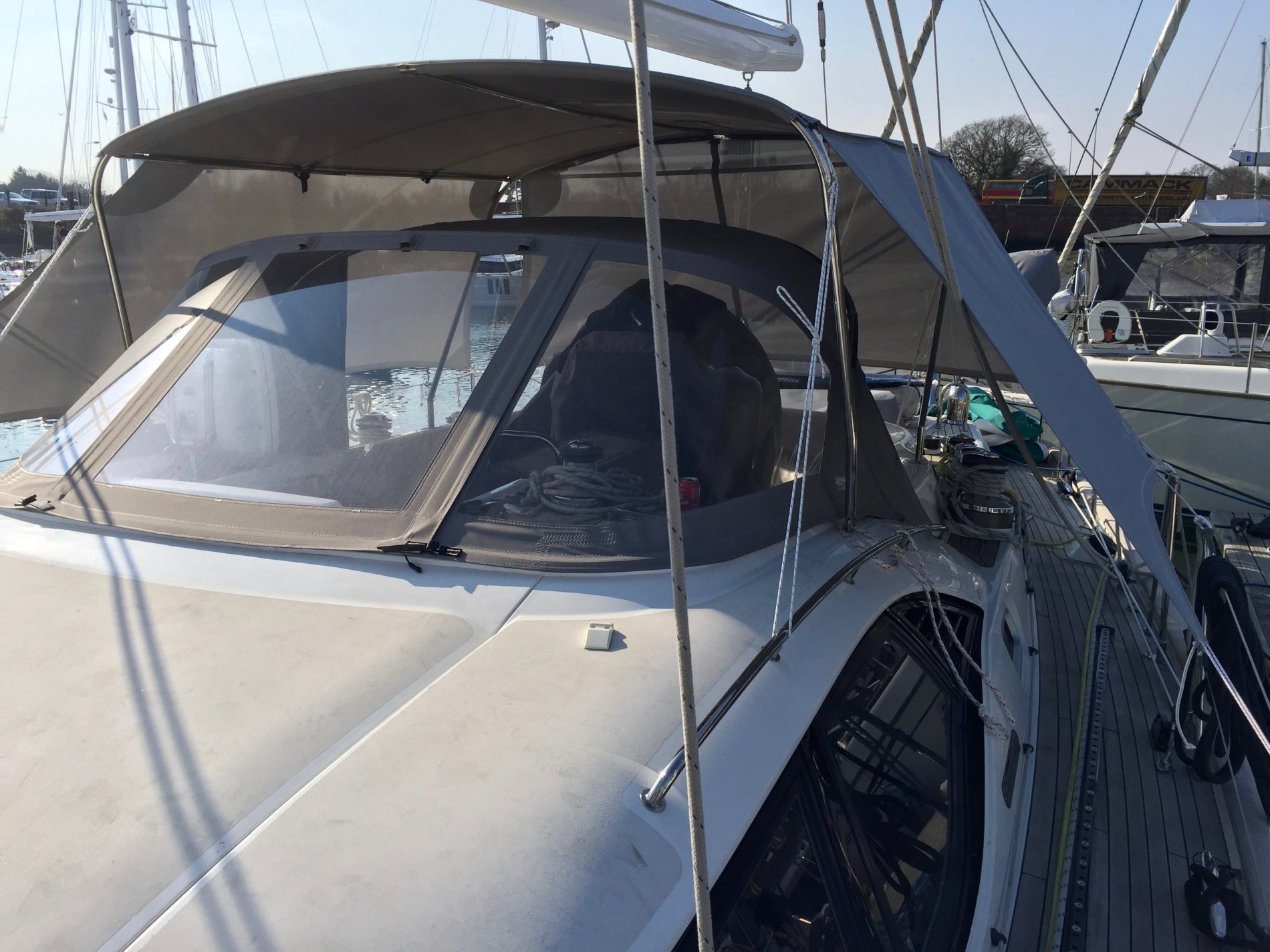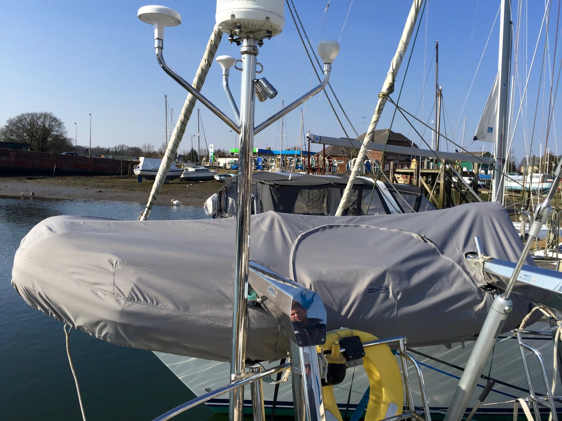 The yacht was carefully moved into Fox’s spray shop to allow the original turquoise boot tops to be over painted in a more subtle grey Awlgrip, which along with the new, beautifully tailored, matching canvas work from Dolphin Sails & Covers, has given this beautiful classic Oyster a sleek, contemporary look.