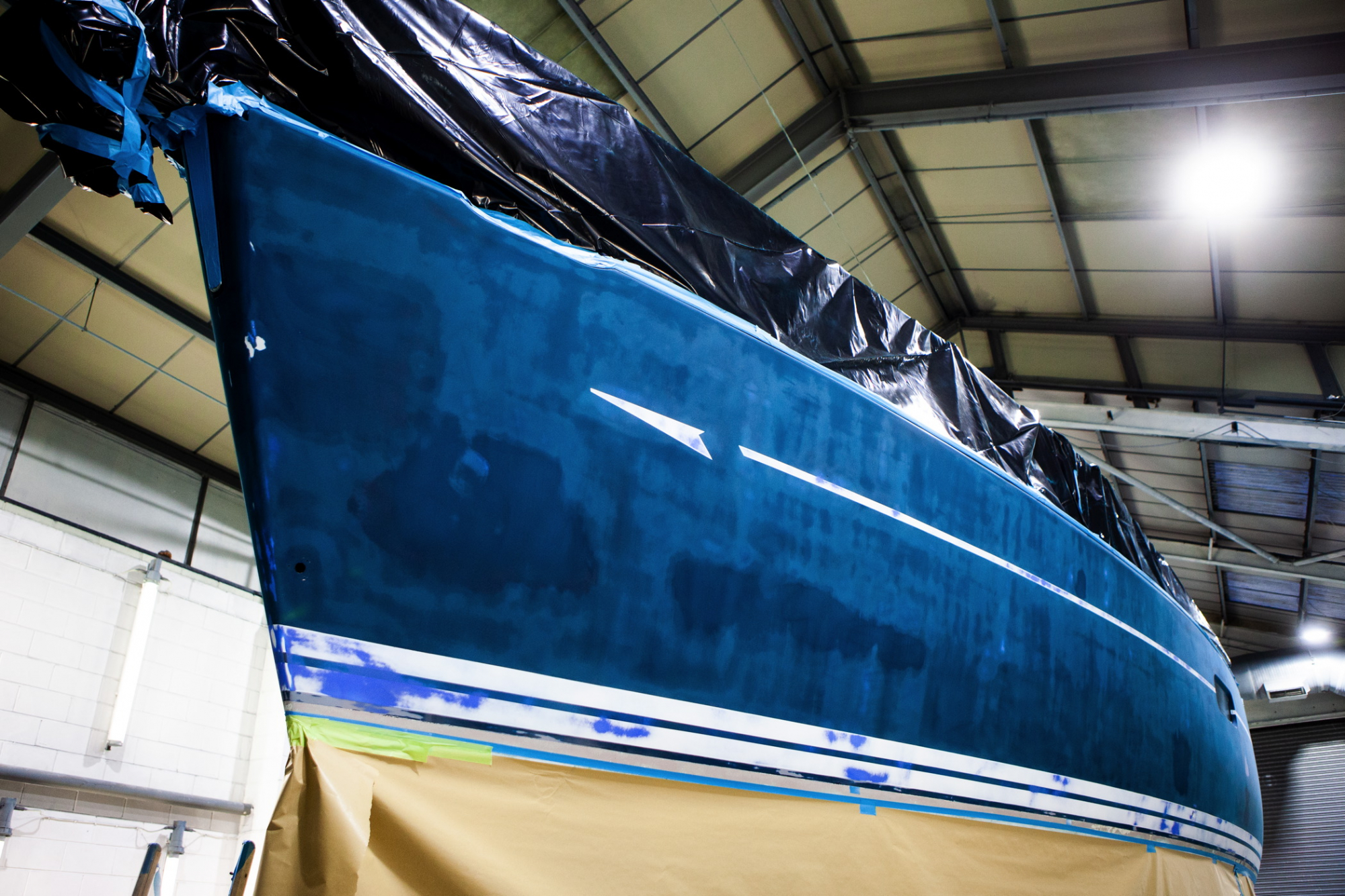 You can view a video of her topsides being resprayed here, using Jotun Megagloss.