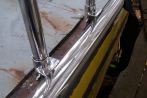 - Stanchion sockets, new stanchions and new pushpit were all fabricated inhouse at Fox’s by our stainless department and a new D-section rubber fender fitted on studs.