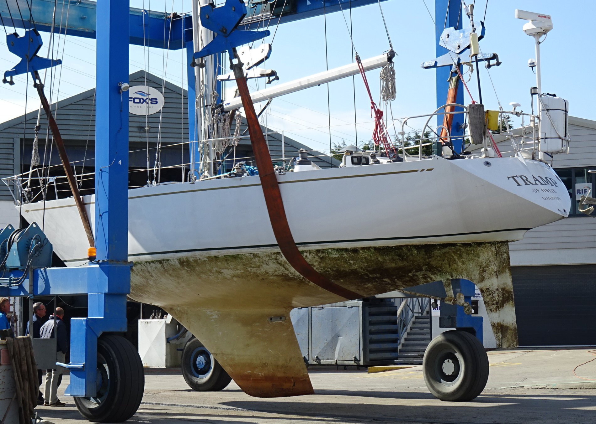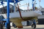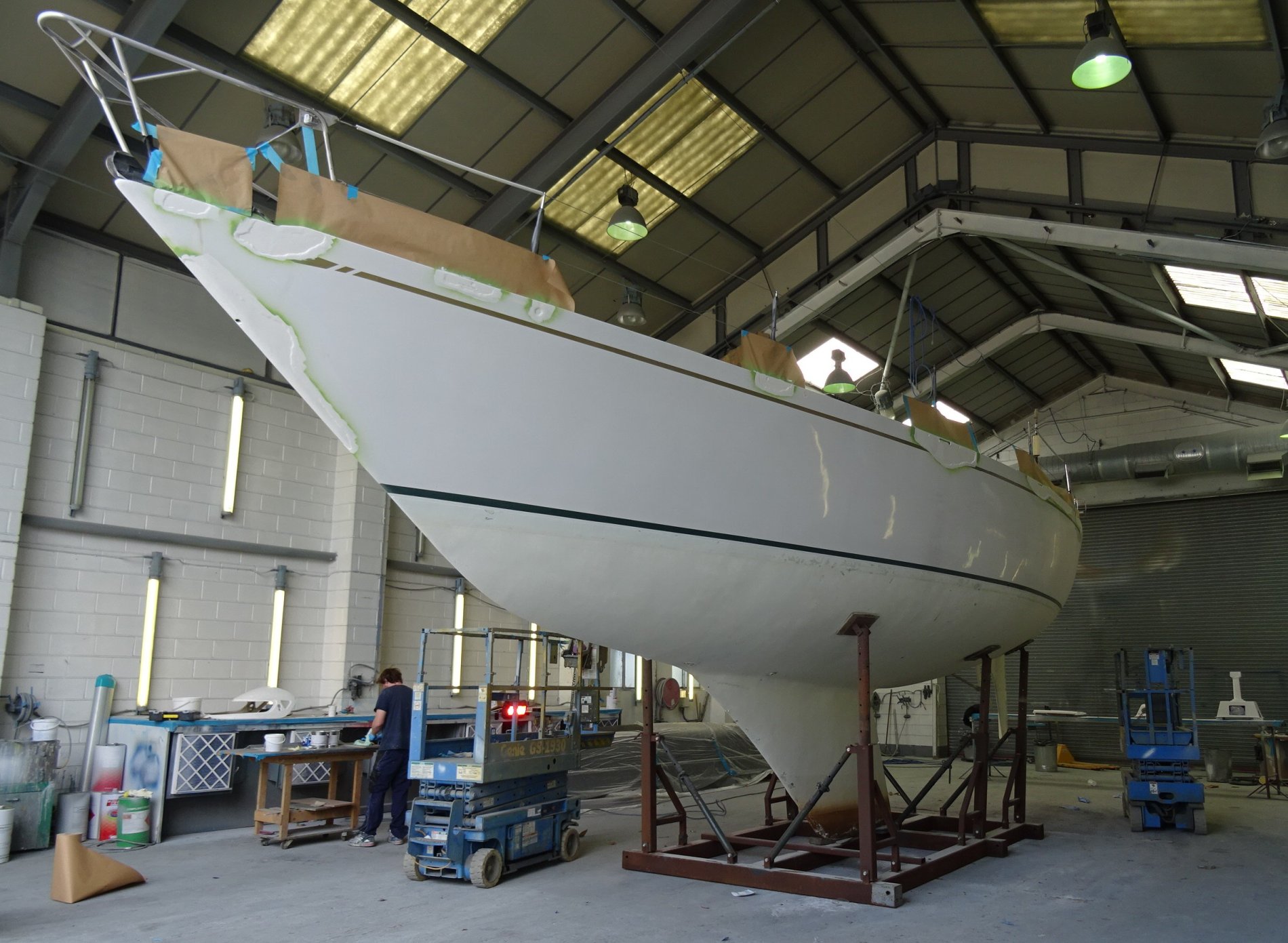 Tramp came to Fox’s for work on her topsides as the hull fairing compound was detached in a number of places and the paintwork well past its best. The yacht was derigged and moved into the Fox’s paint shop. Having removed all loose material, the hull was shot-blasted to bright metal, etch primed and her topsides re-faired prior to repainting in ‘Chevy White’ Awlgrip. Re-rigged, antifouled and back afloat, Tramp has been returned to her former glory with the new paintwork really showing off her beautiful S&S lines.