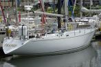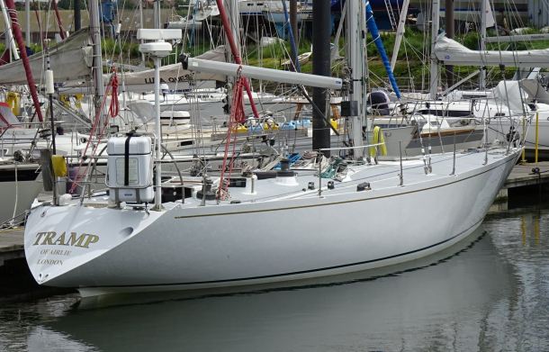 Tramp is built of aluminium, with flush decks, a tall high aspect rig with large overlapping genoa, length overall of 13.5m, a beam of 3.7m and draft of 2.15m. On deck, she still retains much of her original equipment, with the exception of the mast, which was replaced in 2005. Below deck she has been comfortably fitted out for cruising; gone are the days of open plan, pipe -berths and sail bins.