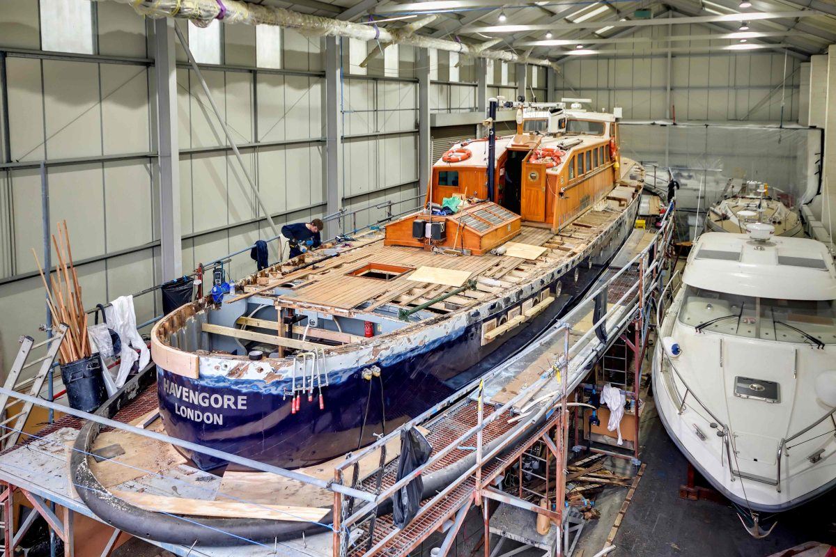 To enable this, Havengore is maintained by Fox’s to commercial standards and, in addition to the requirements of the MCA survey and associated work, Fox’s shipwrights are working through an ongoing plan of restoration that is currently focused on the deck and its associated structure.