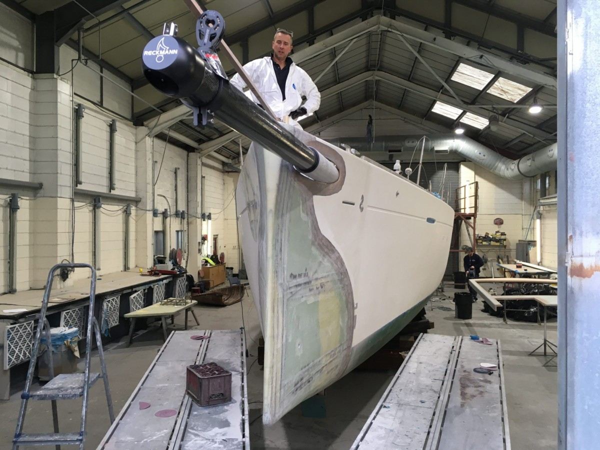 Work on the refit, which includes significant modifications to the bow and stern of the Beneteau First 50, Bam Bam, is progressing well.