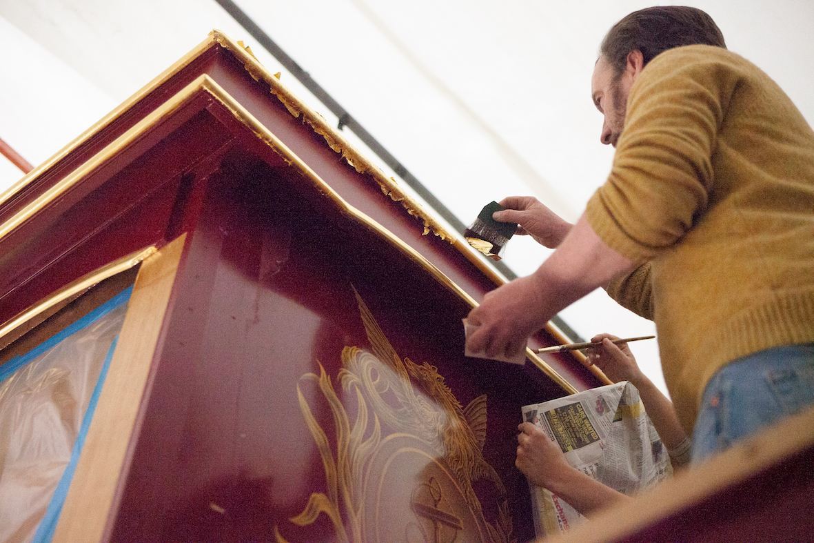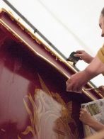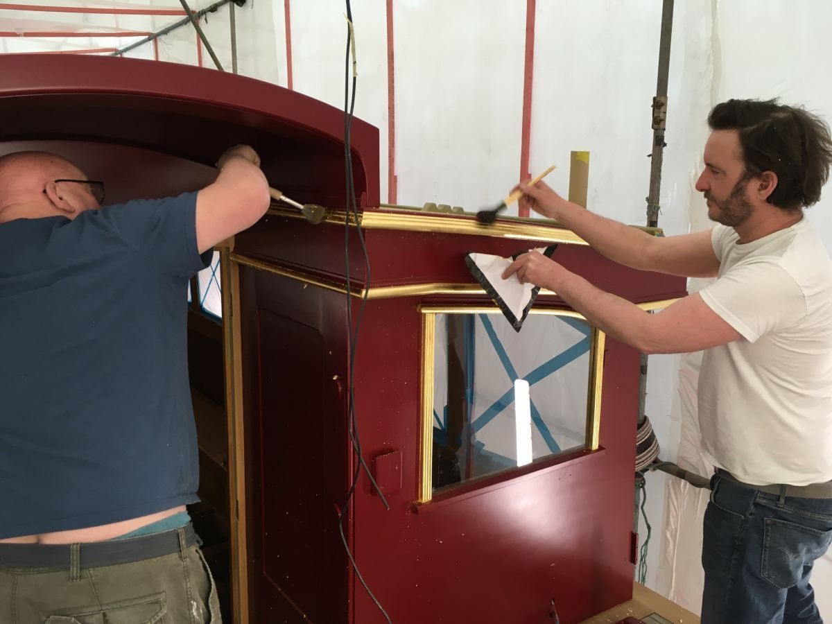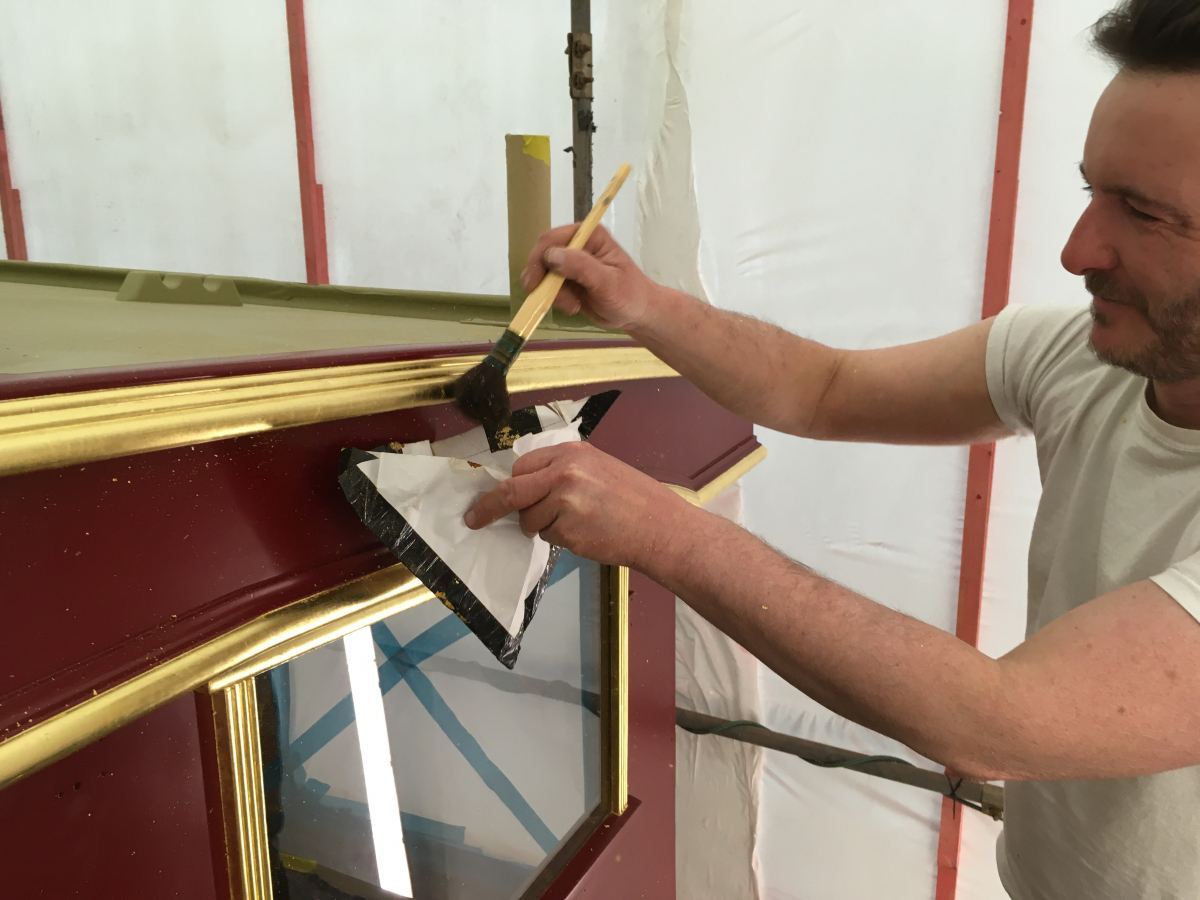 Deck Modifications and painting are complete and a team of specialist craftsmen have just finished the intricate (and fascinating) task of traditional gilding, using 23 carat gold leaf.